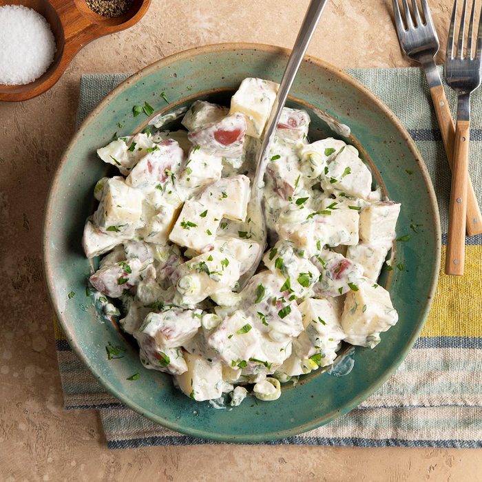 Don’t be fooled by the green color—this vegan potato salad is absolutely delicious! It’s perfect for potlucks and for those with dietary restrictions. —Laura Wilhelm, West Hollywood, California