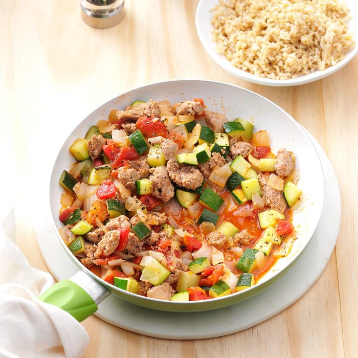 With two young boys constantly on-the-go, I’m always looking for ways to simplify meals. This recipe uses just one skillet, making it a cinch to prepare dinner for a hungry family in half an hour. —Sara Richardson, Littleton, Colorado