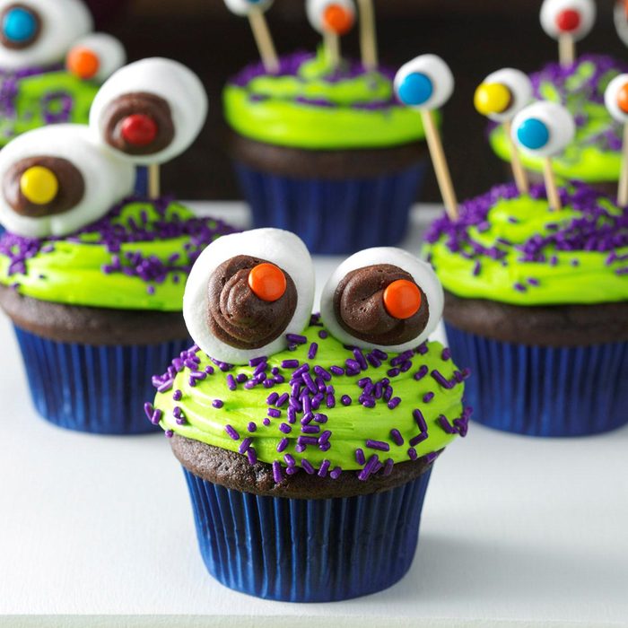 Look out! This crazy cupcake only has eyes for you. Don’t worry though, this Halloween dessert is delicious! —Karen Tack, Riverside, Connecticut