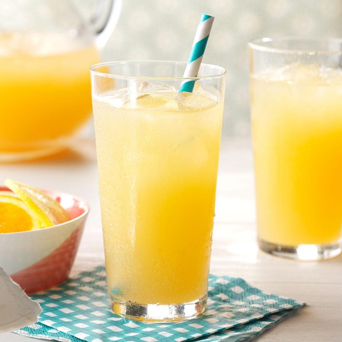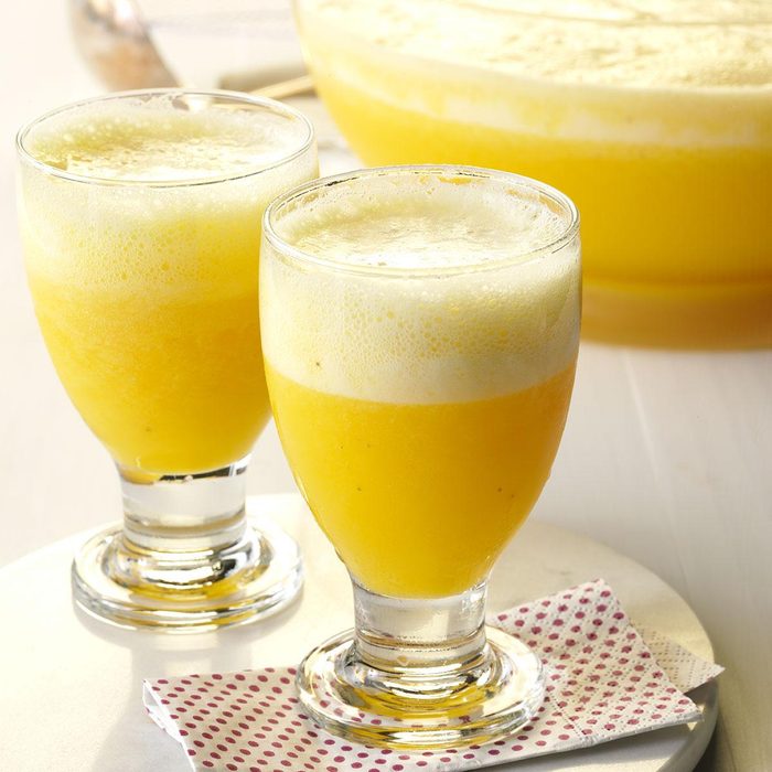 A cold glass of refreshing punch really brightens a brunch. It’s nice to serve a crisp beverage like this that’s more spectacular than plain juice. With bananas, orange juice and lemonade, it can add tropical flair to any day. —Mary Anne McWhirter, Pearland, Texas