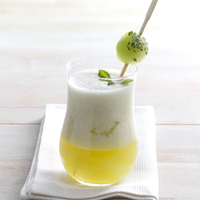 I grow mint on my balcony, and this refreshing beverage is a wonderful way to use it. It combines two of my favorite drinks—Moroccan Mint Tea and Honeydew Agua Fresca. For extra flair, add some ginger ale. —Sarah Batt Throne, El Cerrito, California