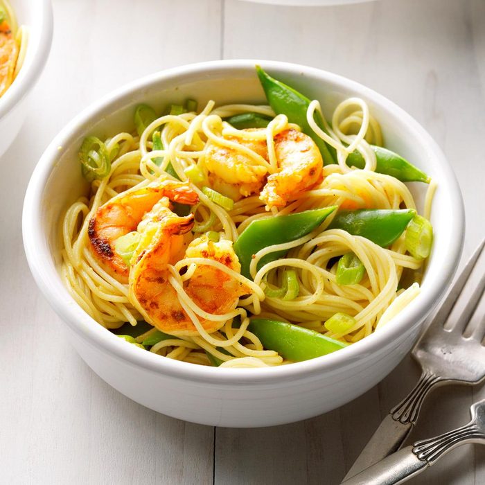 his light and spicy shrimp dish comes together easily. My favorite pasta to use is capellini, but angel hair works fine if it isn’t available. —Thomas Faglon, Somerset, New Jersey