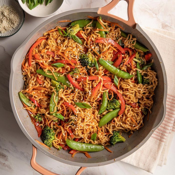 This ramen stir-fry is perfect for using up veggies that you have in your refrigerator. The total amount should be about 4 cups of vegetables that you can mix and match each time you make the recipe. For a heartier dish, add leftover chicken or beef. —Taste of Home Test Kitchen, Milwaukee, Wisconsin