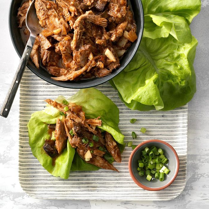 2 filled lettuce wraps: 242 calories, 6g fat (2g saturated fat), 57mg cholesterol, 1017mg sodium, 23g carbohydrate (16g sugars, 2g fiber), 24g protein.