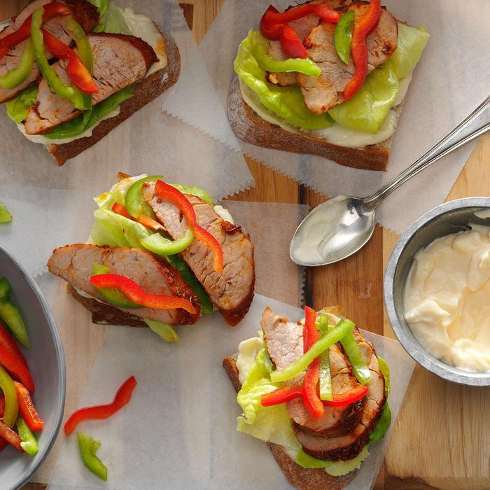 This recipe's simple spice rub gives pork tenderloin an irresistible flavor. You'll watch in delight as these tasty open-faced sandwiches disappear from the buffet table! —Mae Kruse, Monee, Illinois