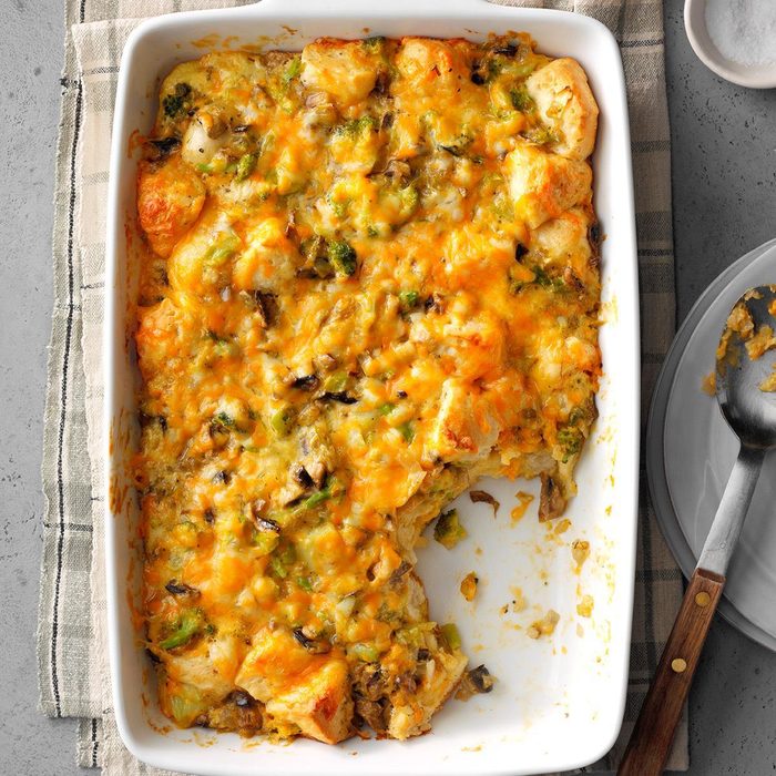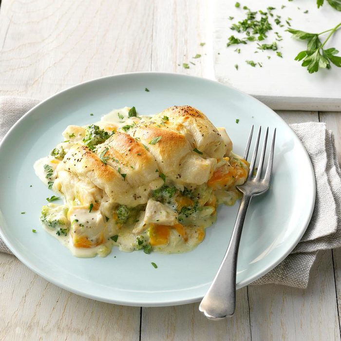 This delicious chicken and broccoli casserole recipe is a twist on chicken divan that came from an old boss. It’s quick, satisfying comfort food. —Jennifer Schlachter, Big Rock, Illinois