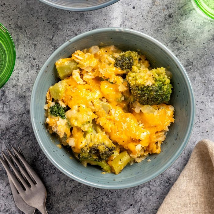 Even people who don’t like broccoli beg me to make this comforting broccoli cheese casserole recipe. It's similar to a classic green bean casserole, but the melted cheese just puts it over the top. —Elaine Hubbard, Pocono Lake, Pennsylvania
