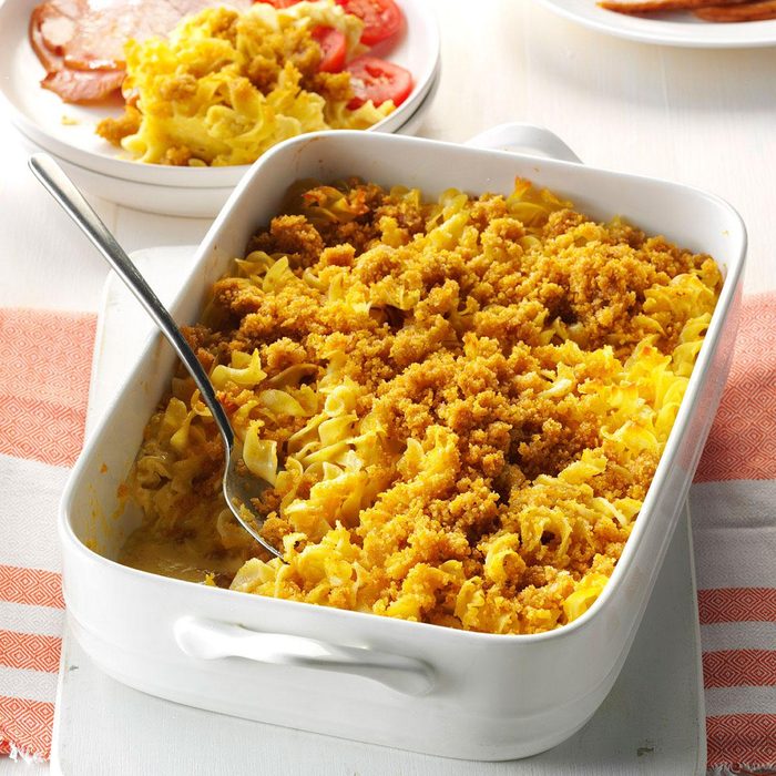 Whenever I bring this creamy dish to gatherings, it always prompts recipe requests. The surprising sweetness comes from apricot nectar, and everyone enjoys the golden buttery topping. —Eileen Meyers, Scott Township, Pennsylvania