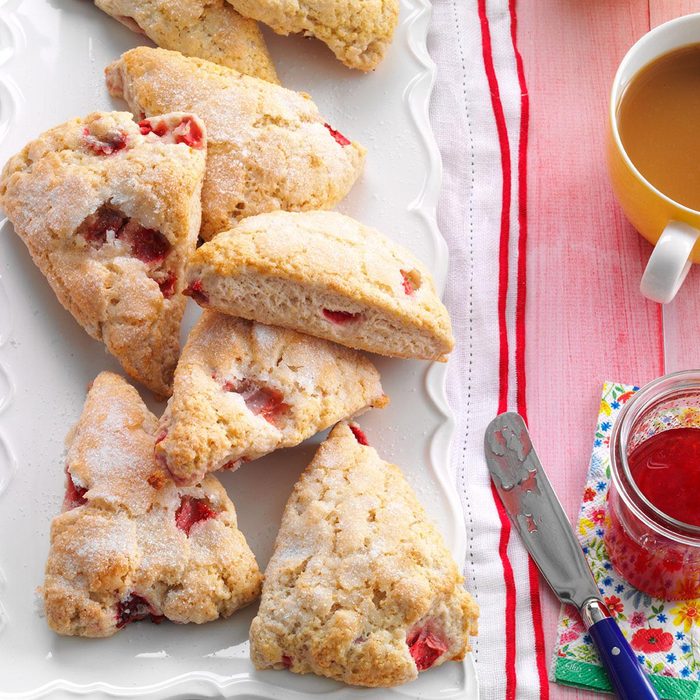 This strawberry scones recipe is rich with cream and packed with berry goodness. If you are like me, you won’t be able to eat just one! —Agnes Ward, Stratford, Ontario