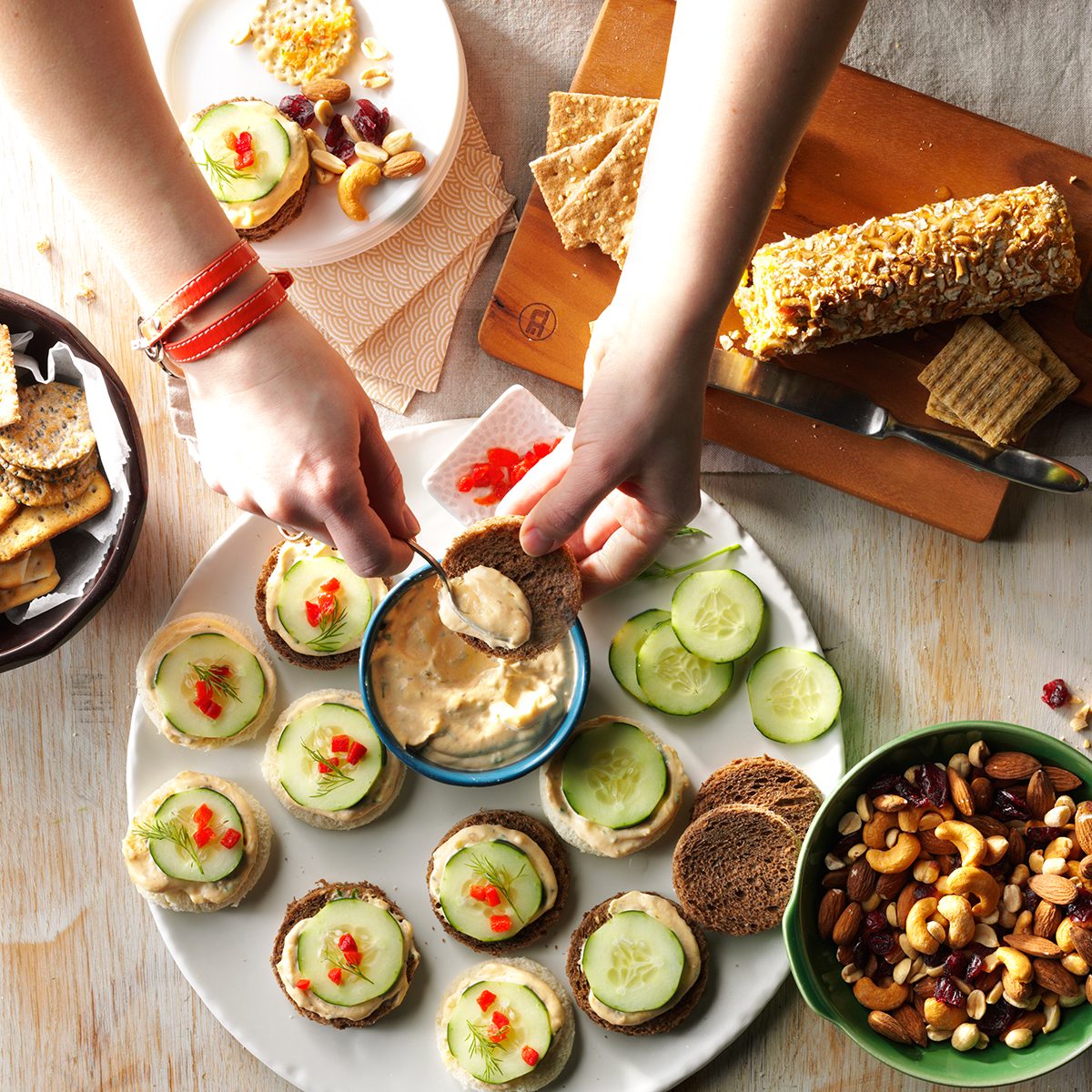 “I typically do only room temperature or cold appetizers, so I don’t have to worry about giving up oven space for an app or keeping the apps warm as company trickles in. That also means most of them can be made in advance.”