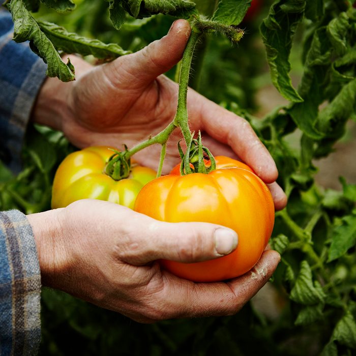 If you live in a very warm climate, tomatoes won’t ripen to red. According to Burpee, once temperatures get into the 90s, tomatoes will only turn orange. If you know the heat is here to stay, pick the orange tomatoes and let them ripen on your countertop. If you think the heat will break in a few days, just wait it out. Once temperatures drop, those orange tomatoes will turn red quickly and you can harvest.
