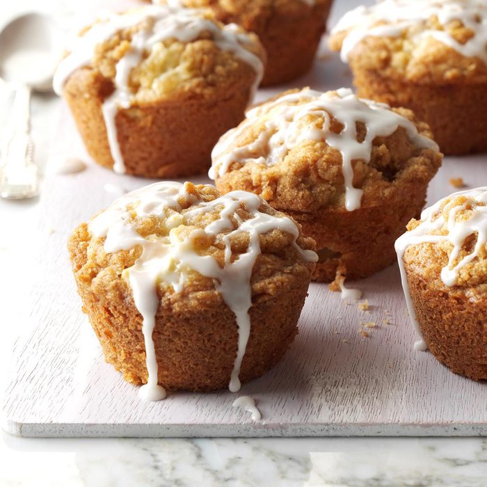 These apple streusel muffins remind us of coffee cake, and my husband and kids love them as a quick breakfast or snack on the run. The drizzle of glaze makes them pretty enough for company. —Dulcy Grace, Roaring Spring, Pennsylvania