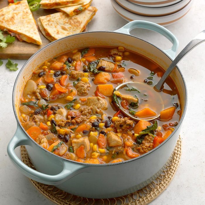 This spicy stewlike soup is traditionally served in New Mexico at holiday time to celebrate life's blessings, but it's good any time of year. —Taste of Home Test Kitchen