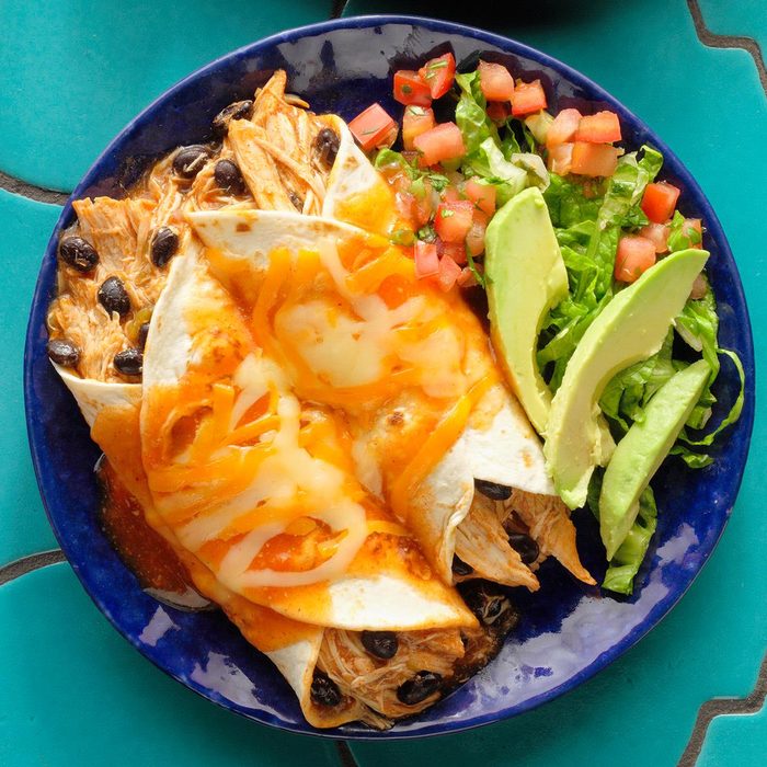 This slow-cooker shredded chicken enchiladas recipe is my husband and I’s favorite dish. You can modify it to suit your taste, adding corn, rice or refried beans. —Jenny Miller, Raleigh, North Carolina