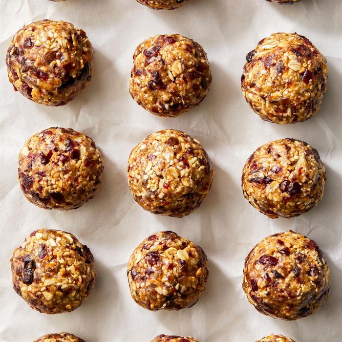 If you’re snacking before dinner, it doesn’t get easier than these no-bake energy balls with cranberries, oats, almond butter and sliced almonds. And they’re so nutritious, you can even eat them for breakfast the following day.