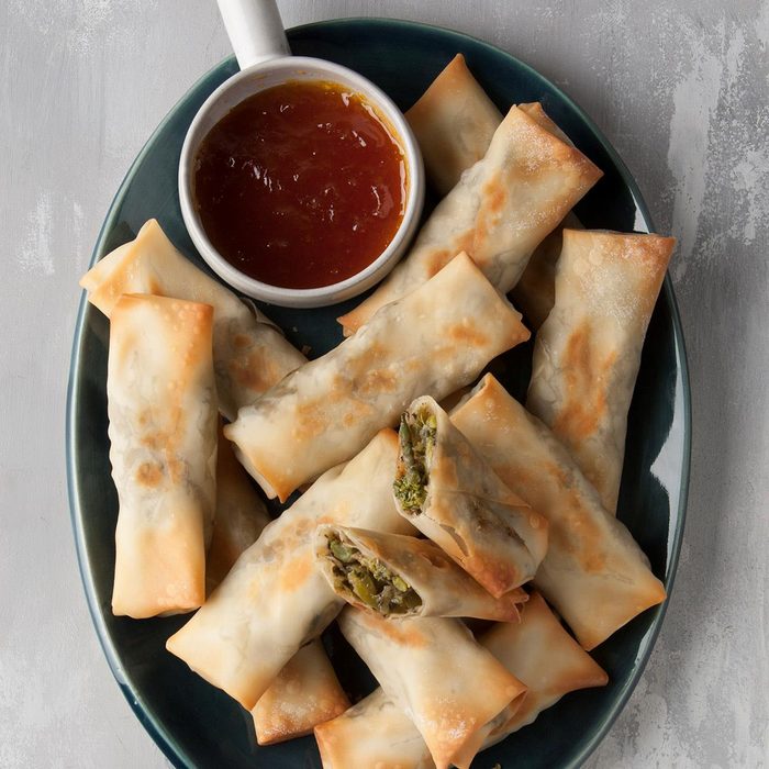 It's nice to get a crunch from egg rolls that aren't deep-fried. Combined with the sweet-hot dipping sauce, these vegetable egg rolls are a wonderful alternative to less healthy versions. —Pamela Thomas, Watchung, New Jersey