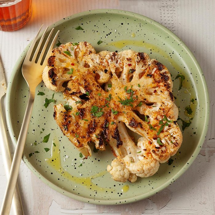 From the Recipe Creator: If you like grilled flavors and want to eat healthier, swap in a grilled cauliflower steak for a meat one. A blend of seasonings, including smoked paprika, and the right time on the grill transform humble cauliflower into a charred and satisfying main dish. —Taste of Home Test Kitchen