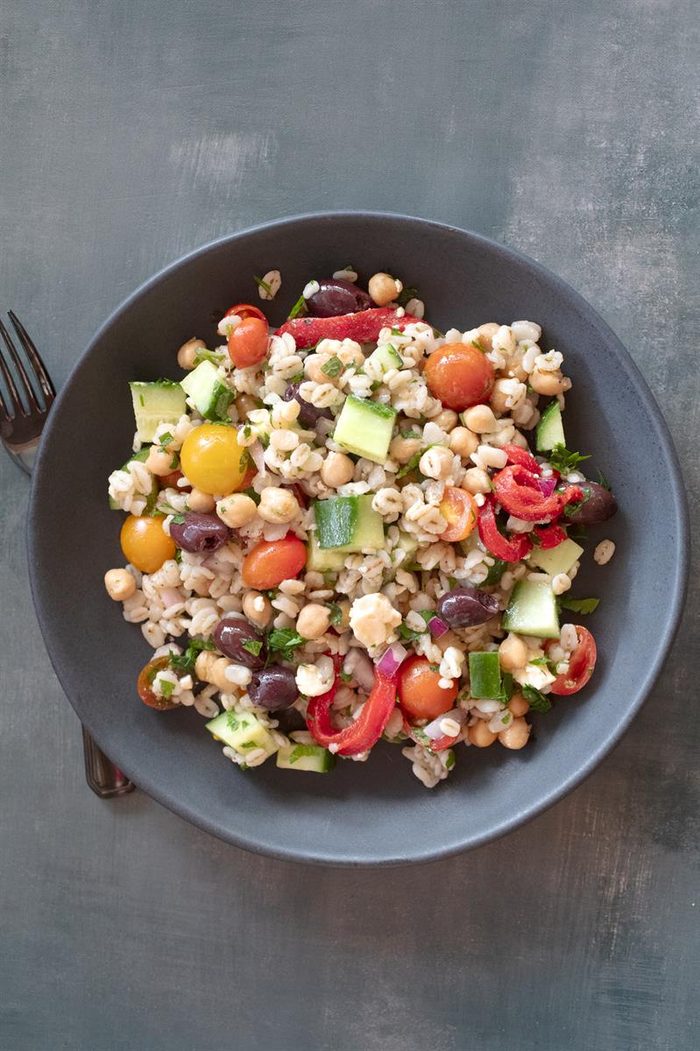 This Mediterranean-inspired salad lasts for several days in the refrigerator, so double the recipe if you’re meal prepping salad for the week. We love the protein-rich combination of chickpeas and feta, but you could easily swap in other beans and cheeses to make it your own.