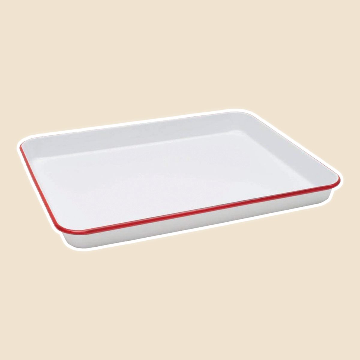 In solid white with red trim, this enamel baking pan adds a bit of retro flair to whatever strikes your baking fancy. Roomy enough for cookies (oh lemon meltaways, how we love thee!) or a loaf of bread, this dish can be a versatile, hardworking addition to your kitchen collection.