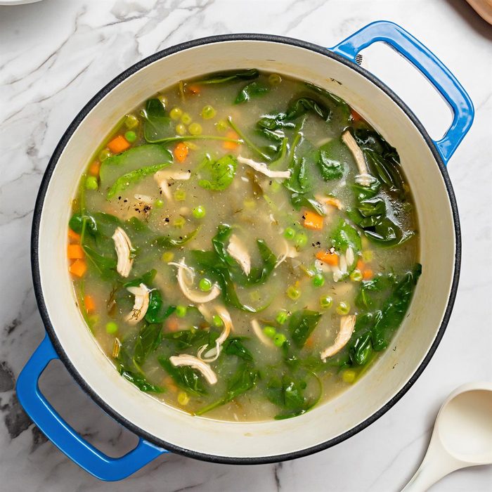 I could eat soup for every meal of the day, all year long. I particularly like dill and spinach—they add a brightness to this light and healthy soup. —Robin Haas, Jamaica Plain, Massachusetts