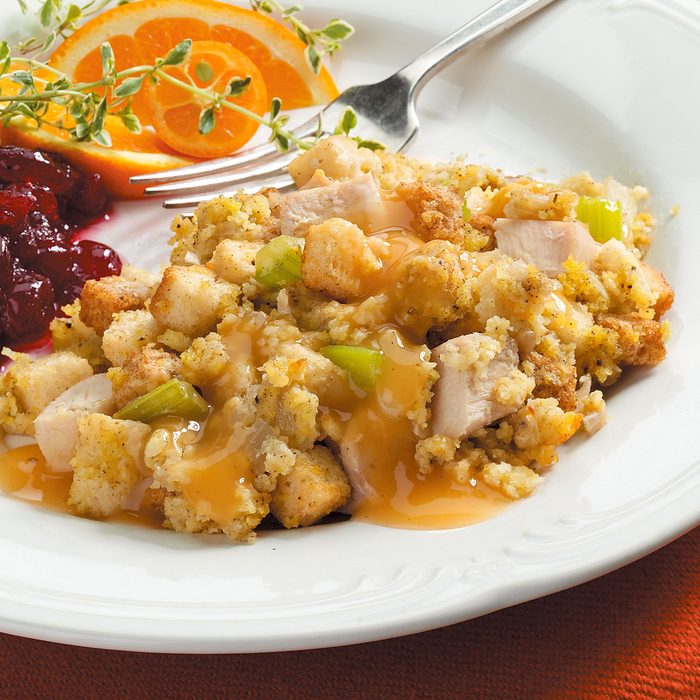 From the Recipe Creator: I enjoy experimenting in the kitchen. I started with a basic bread stuffing, then began adding different things from my cupboard. This is the recipe I came up with. The stuffing disappears long before the bird is gone! —Joanne Callahan, Far Hills, New Jersey