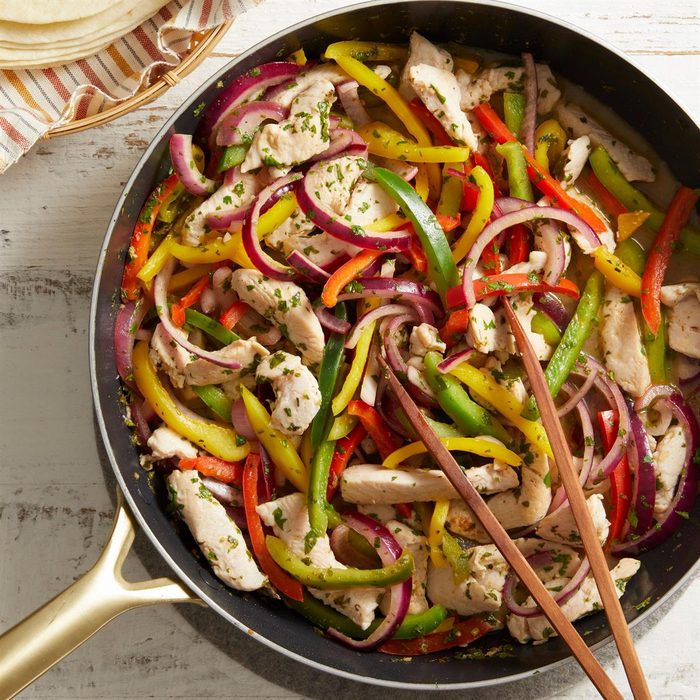 I prepare these quick and easy fajitas about once a week, and my family never gets tired of them. I like serving them with salsa and light sour cream on the side. —Bonnie Basinger of Lees Summit, Missouri