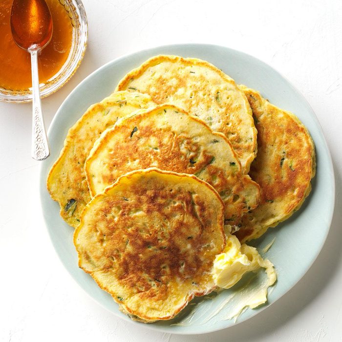 Zucchini fritters taste fantastic as part of a savory breakfast. They crisp up on the outside and stay tender on the inside. Simply combine grated zucchini with eggs, milk, all-purpose flour and your seasonings of choice. For an extra punch of flavor, add Parmesan cheese or chopped green onions to the mix. Then, fry them in hot oil and serve with eggs and toast.