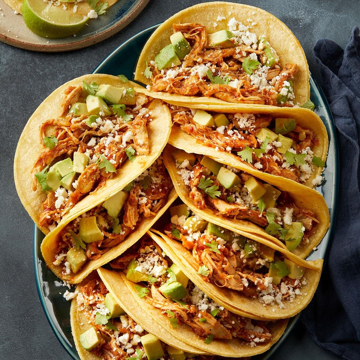 Chicken tinga tacos are packed with saucy, spicy chicken. Top them with your favorite fresh herbs, Mexican cheeses and more.