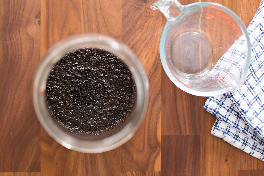 • Get the ratio right: There is a huge range of cold brew ratios. We’ve seen everything from a strong 1 part ground coffee to 4 parts water, to a more watered-down 1 part ground coffee to 16 parts water. We prefer somewhere in the middle: 1 part coffee to 8 parts water. We use measuring cups for our ratio, so there’s no need to pull out the kitchen scale.