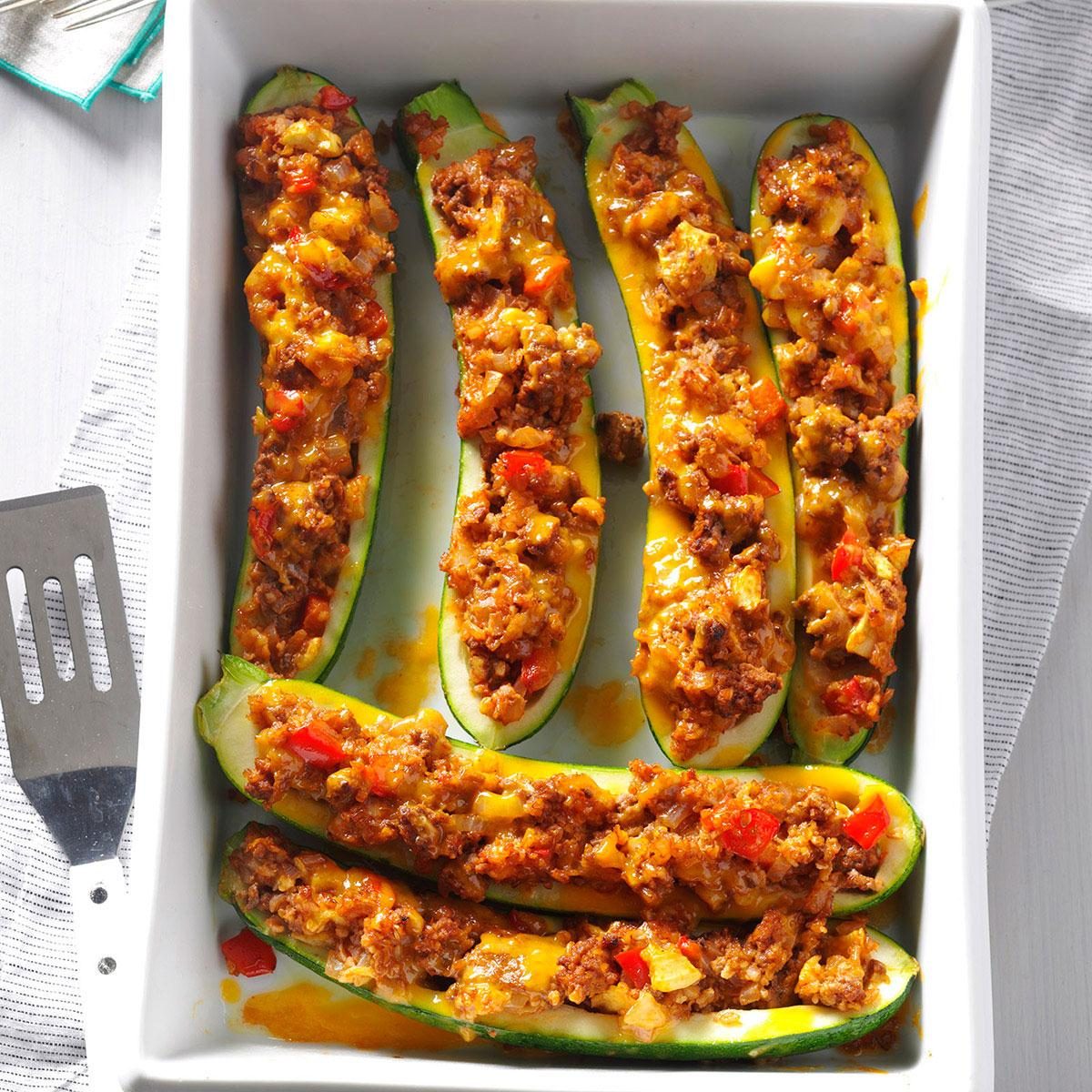 Beef & Bulgur-Stuffed Zucchini Boats