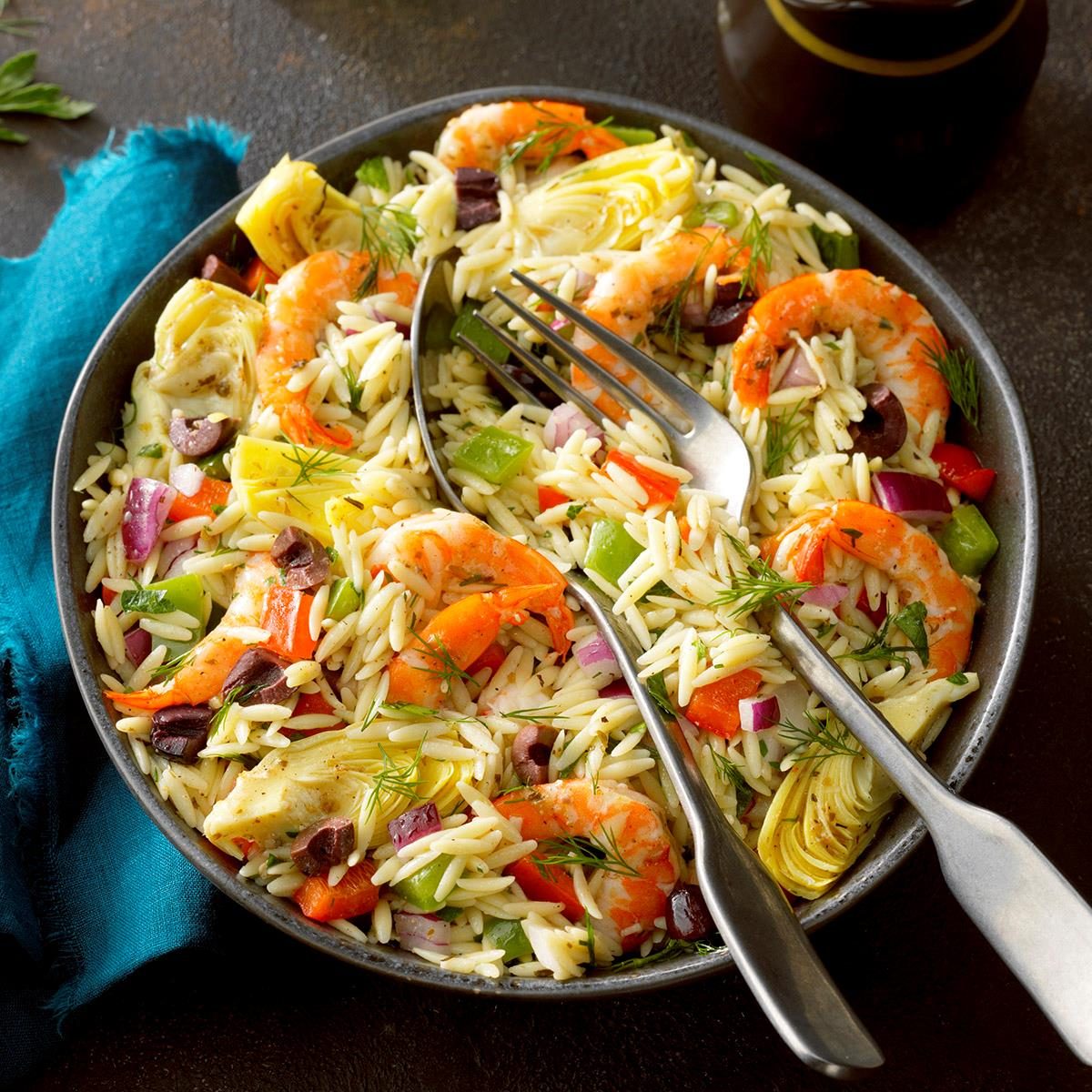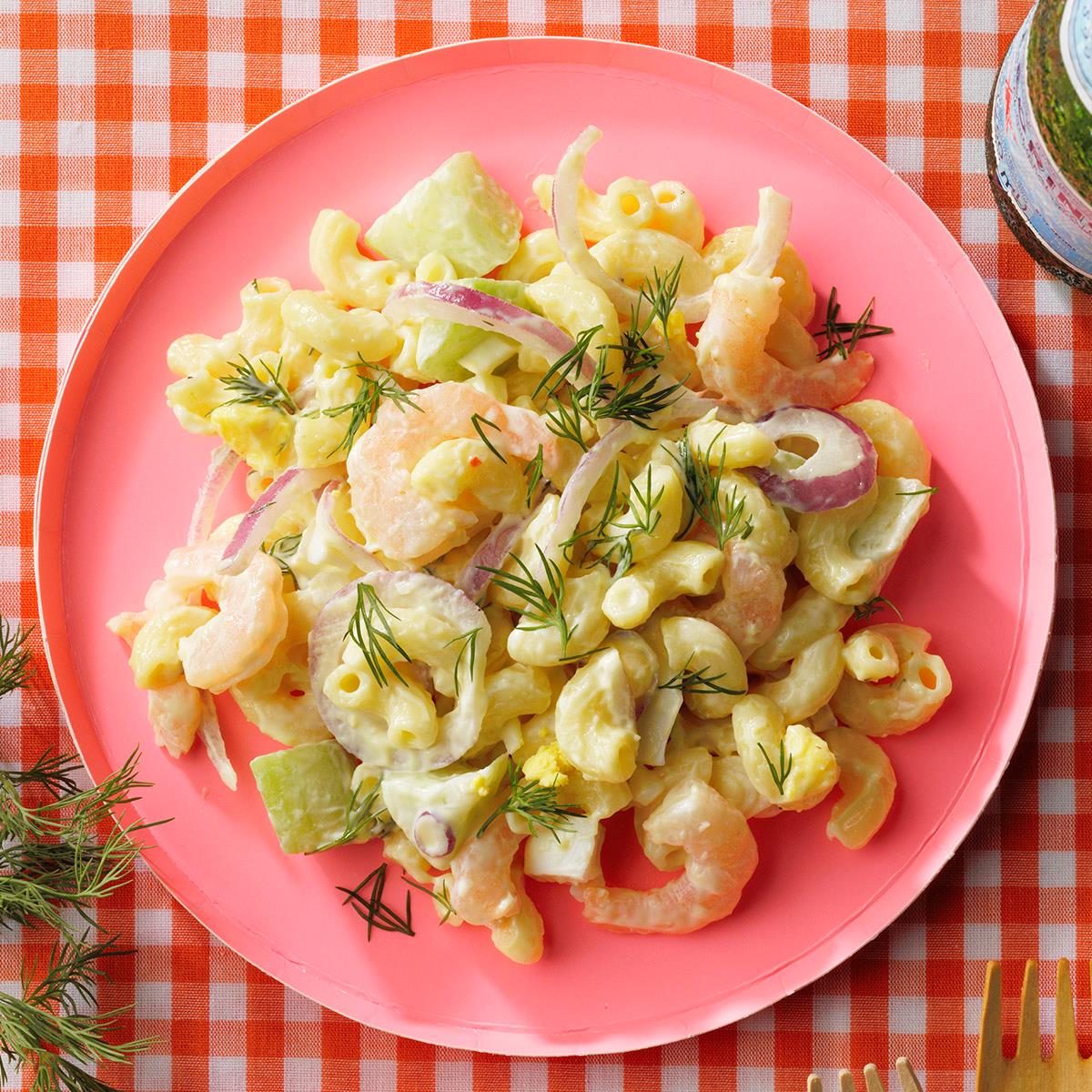 Loaded with veggies and shrimp, this crowd-pleaser is a tasty change from standard pasta salads. —Ginger Johnson, Pottstown, Pennsylvania