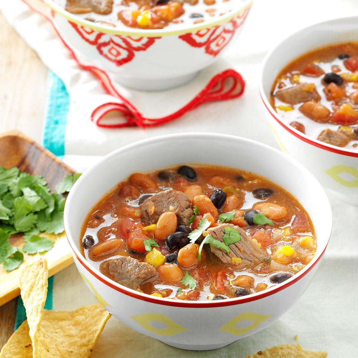 This weeknight steak soup packs rich flavor into a light broth. My family loves the blend of southwestern flavors. —Rebecca...