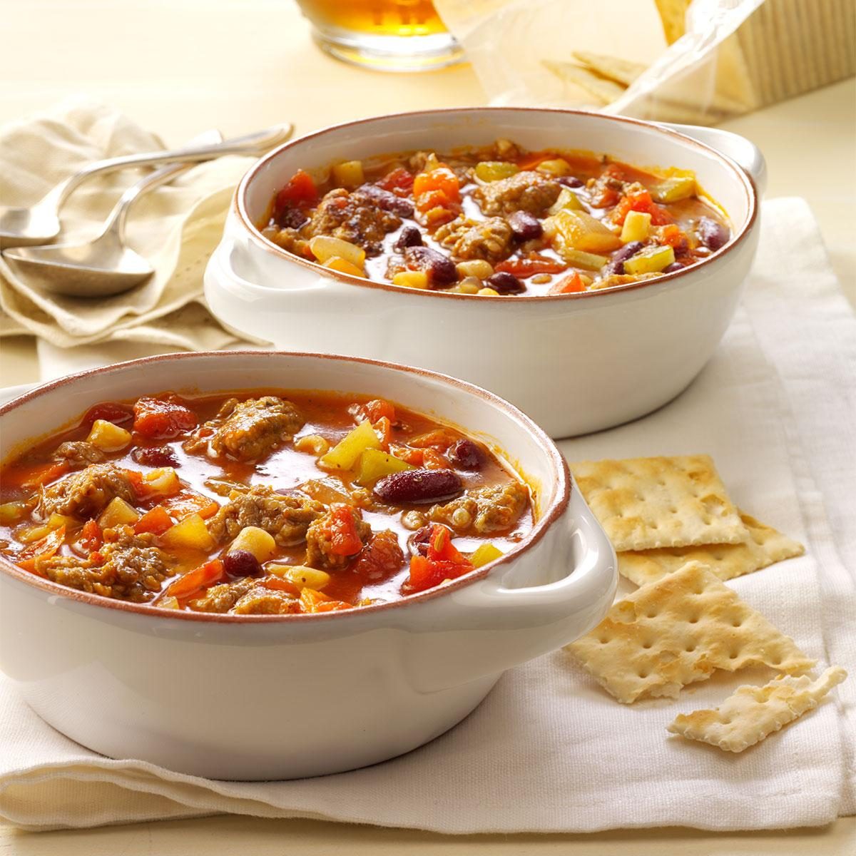 This is one of my husband's absolute favorite dishes. It was voted best chili at our county's autumn harvest festival....