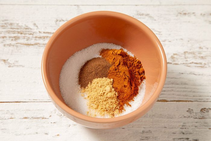 Combine the sugar, cinnamon, allspice and ginger.