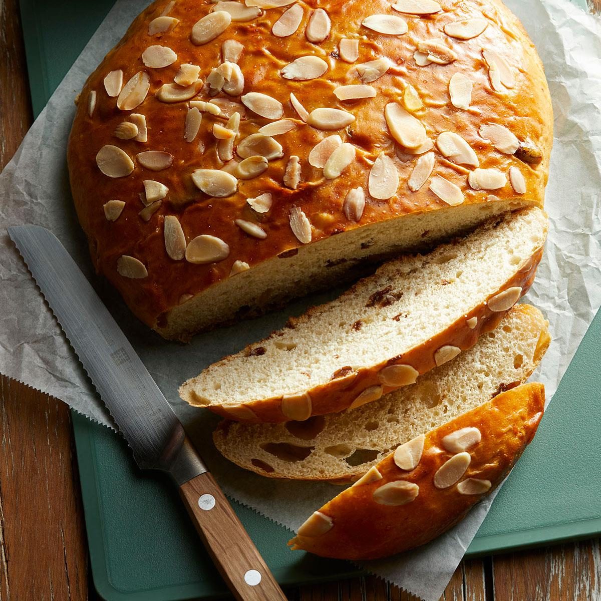 This bread machine panettone is easy to make. Every tender, moist slice is filled with candied fruit and raisins. —Josephine...
