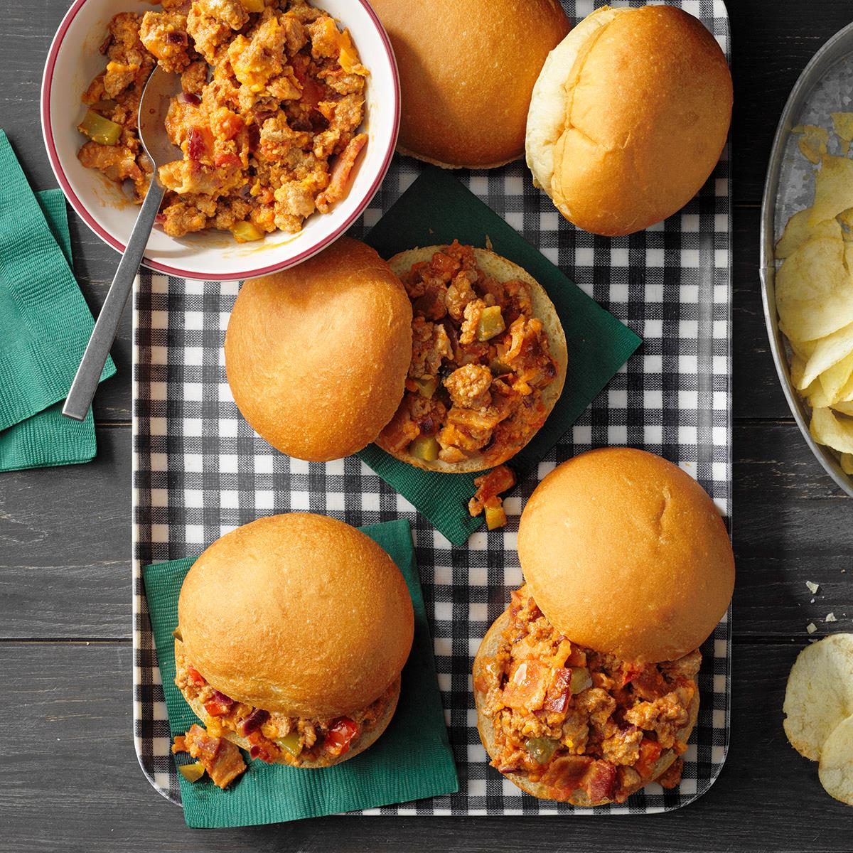 Turkey and bacon give the classic sloppy joe a tasty new spin in this cheeseburger sloppy joe recipe. —Janine Smith,...