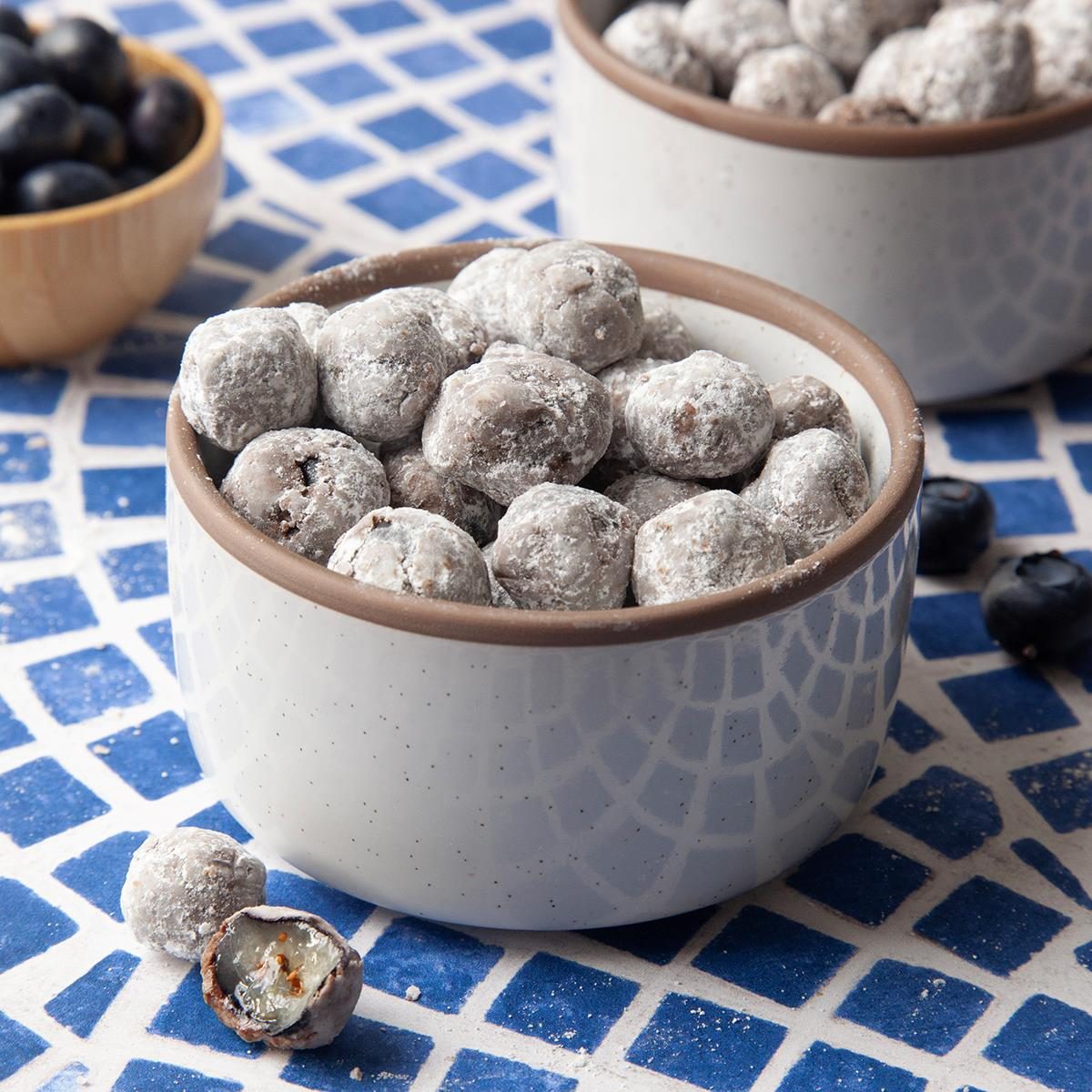 This blueberry puppy chow has all the sweet chocolate-peanut butter taste of the old-fashioned recipe with the addition of juicy, fruity blueberry bliss.