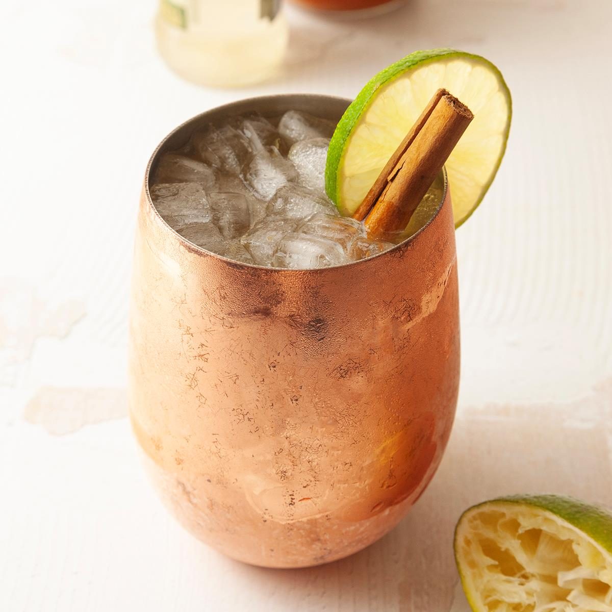 The pumpkin spice Moscow mule is an autumnal twist on the classic, spiked with cinnamon simple syrup and real pumpkin.